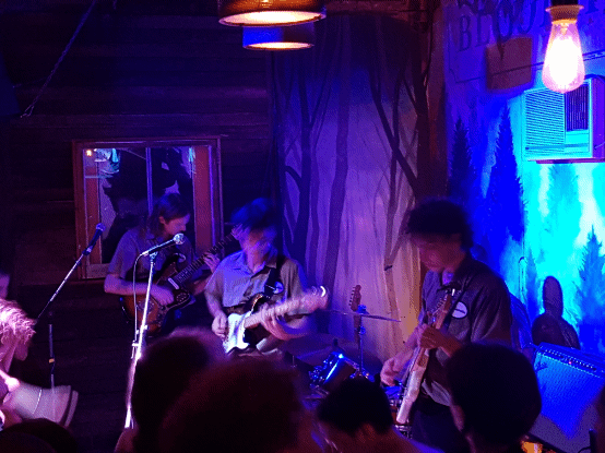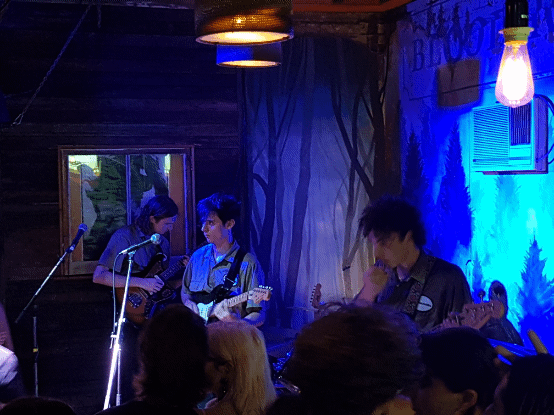 I catch the last few songs of local indie rocker Harmon and his band. I regretfully never make it in time to see Harmon’s full set when he’s on the bill. I’m pretty sure I’m listening to Nerve though, it’s a catchy track regardless, and the chorus’ hook has people grooving in the hot attic of Bloodhound. The fuzzy lead guitar solos help elevate the chorus and verses, giving the track a bit more gusto. One thing’s for sure, I’m not envious of Harmon’s now iconic red jumpsuit he’s dressed in on this hot summer’s night.