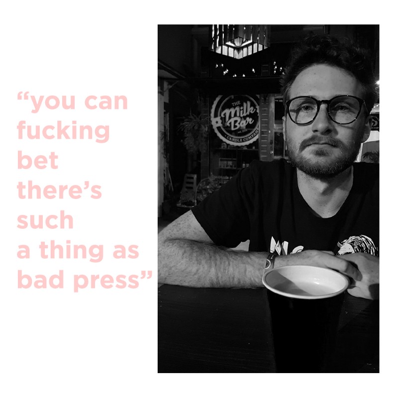 But it had me thinking, what if I was caught saying something inappropriate or misguided? Would it be the plug I need to get this blog that I now care so much about off the ground? Would it be that shock to the system that would jolt me into the industry as if John Travolta stabbed me in the chest with a shot of adrenaline? Maybe ten or fifteen years ago it would work. But I would never intentionally say something fucking stupid to get myself into the limelight. I’m not Donald Trump. But what if something I said was mistaken for being much worse and made some social media news? Like I call out Camp Cope’s lead singer for publicly shaming men on her Instagram who disagree with her politics? That’s a fair statement, I disagree with how she handles criticism (in fairness, she publicly shames many men who verbally harass her over her sexuality on Instagram, and I can get behind that even if I don’t agree with the whole name and shame idea). But when someone calls her out, very politely and with fair intentions, she screenshots the conversations and blasts it over her Instagram stories. Imagine if I wrote that article, and someone was to send that to triple j. I can bet your bottom dollar that I’ll be the bad guy. I’ll be the one people call sexist or bigoted. Then they’ll scroll through my blog looking for dirt on the accused and find that Kink poem I wrote that deals with some sexually explicit content. Now I’m a pervert and a bigot in their eyes. And the spiral of my decline, and Radio Friendly’s decline, would continue.