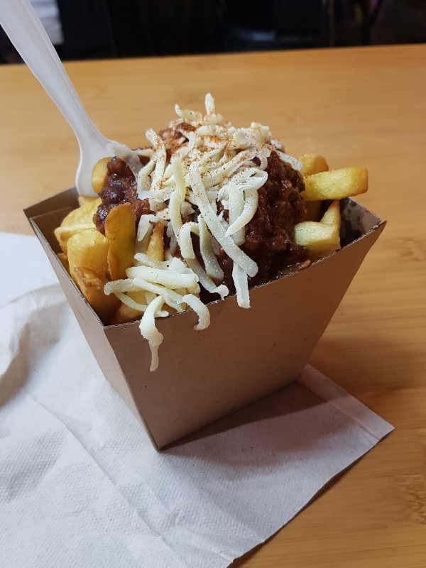 10:21pm. I’m taking a break. I’m eating now. 5 Dogs Chilli Cheese Fries to be exact. Usually I’m drunk when I’m eating this. But fuck, this is spicy tonight.