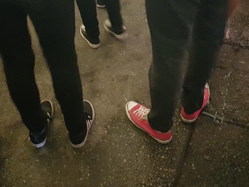 10:36pm. I’ve changed my scenery again. Inside The Elephant, punters are dressed in their finest street wear; the triple white stripe beams in the stage lights, the Nike caps shelter them from the rain, though their crisp white shoes might get a bit dirty in those puddles.
