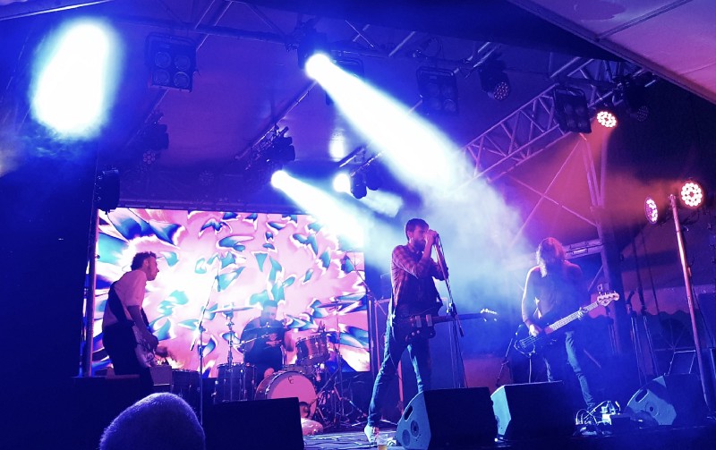 The crowd begins to thicken but seem too afraid to move any closer to the stage. Tape/Off don’t care. They have a true punk rock attitude whilst keeping a level of professionalism to their set. The lead singer does an excellent job of transitioning between a powerful scream and a melodic Aussie twang. Even if he borders on out-of-pitch, the rawness of the performance adds to Tape/Off’s charm. They resemble an Aussie Sunny Day Real Estate. The band incorporate extended solos and jams into their songs, elevating their performance and showcasing that they have much more to offer than others in their genre. Their songs are more dynamic than other punk rockers in Australia; Tape/Off aren’t afraid to thin out instrumentally in the verse and erupt in the chorus. It’s refreshing to hear.