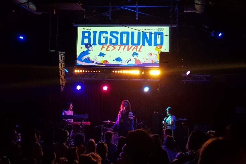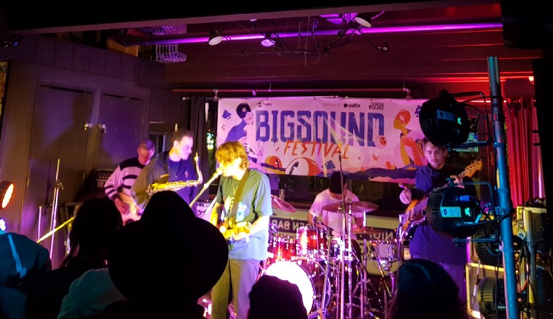 8:21pm. I follow my legs into The Brightside. Pink Matter are ten minutes into their set. The local jazzy quartet have drawn a fair crowd for the early timeslot. But I remind myself that this is BIGSOUND; people are out and about earlier than your average Friday night gig. The smell of piss smacks me across the face harder than I’d like this early on into the night. The Brightside must have got well and truly fucked up last night.