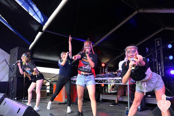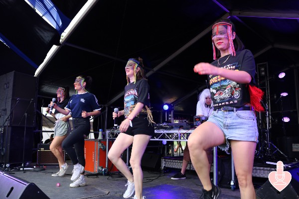 I move back to the smaller ‘Aurora’ stage for Haiku Hands. The name rings a bell, though I’d be lying if I said I was familiar with their music. Going off names though, I’m expecting a lot of visceral hand movements accompanied by three-lined poetry with a precise syllable formula. Luckily, I’m wrong. Haiku Hands make the stage after a Doc. Brown looking DJ mixes some interesting and obscure beats. Four women begin to dance across the stage, their faces covered with a mask that is equal parts rave-ware and traditional Nepalese attire. This is Haiku Hands. The women scream into the mic, and strut across the stage with a bossy sass that is further reinforced through their lyrics. Haiku Hands spit some cleverly sassy bars across their rave-house styled beats, thanks to Doc Brown out the back mixing and scratching dance-worthy tunes. I’m taken aback by the performance I’m witnessing. It’s a confident, strong, sassy and infectious performance even has me dancing. And I’ve only had one beer.