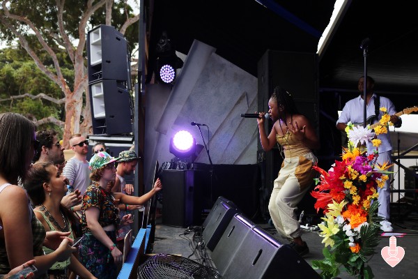 I tear myself away from Sampa The Great and I grab a $9 beer. If I continue, I’ll be broke by night. Nestling my beer in hand, I have a cheeky look at the house-music stage. Situated at the back of the festival, a small group of dedicated discoers twist and groove to the repetitive bliss of house-music. The DJ is even standing in a makeshift cubby house, how ironic. But, unless you are amongst the deafening bass of the speakers, the noise is often defeated by the tuning, sound check, and eventual music, of the stage across the hillside. It’s a chaotic mess of sounds, but something unavoidable in a small festival.