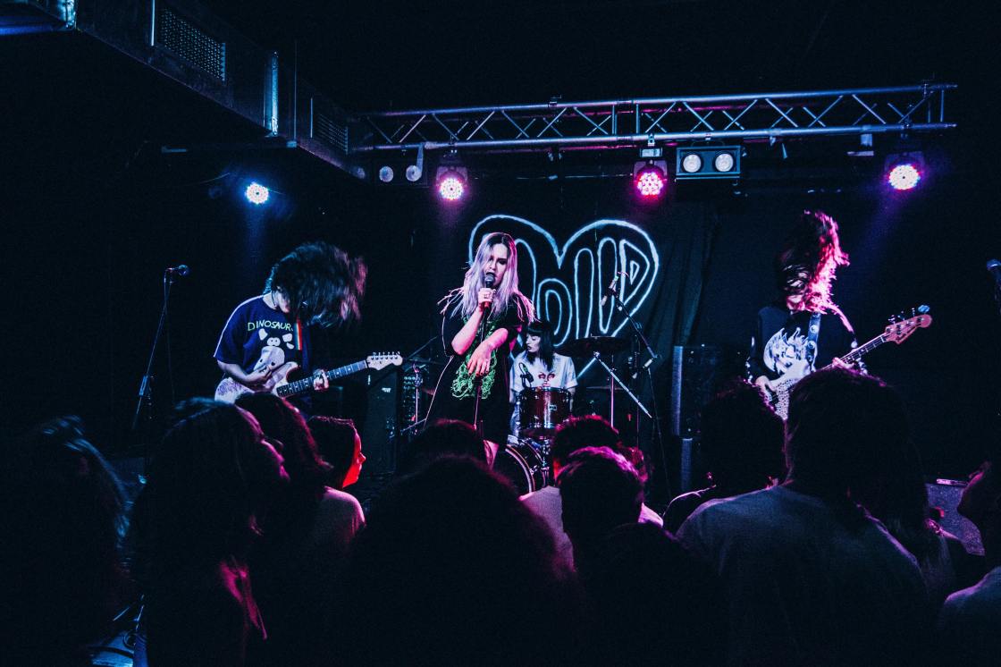 After a short stage swap, VOIID take the stage and immediately begin to play. The guitar is heavily distorted, the bass is thick and as crisp as Scott Morrison’s white Photoshopped shoes. Vocalist Anji Greenwood soon walks on stage with the confidence of a seasoned performer. Their 90s grunge tone mixed with hardcore punk creates a soundtrack I imagine Daria would listen to. Greenwood articulates her lyrics with a sass and assertion, her eyes roll in the back of her head with a sarcastic charm. Or maybe it’s just the pre-show Jager-bombs. It’s as if she’s in a character, acting like the stereotypical female performer one minute, and the punk prima donna she was born to be another. This duality in performance reinforces the socially political meaning behind VOIID’s tracks, especially in their single Silly Girl.