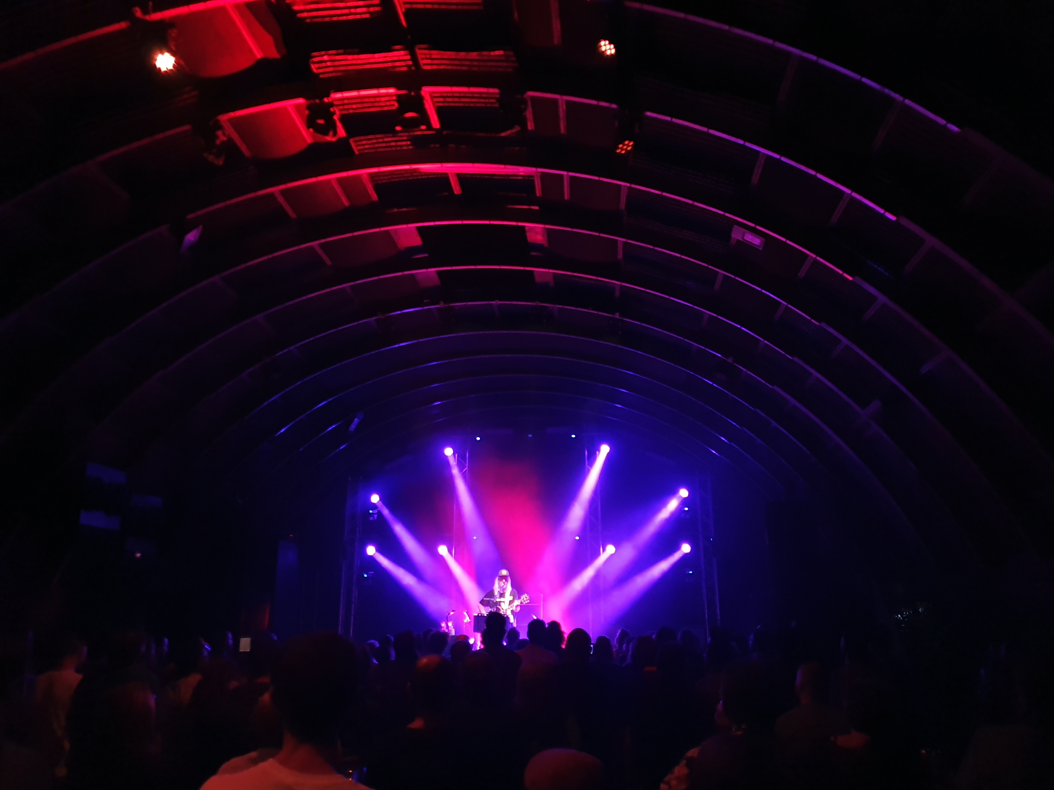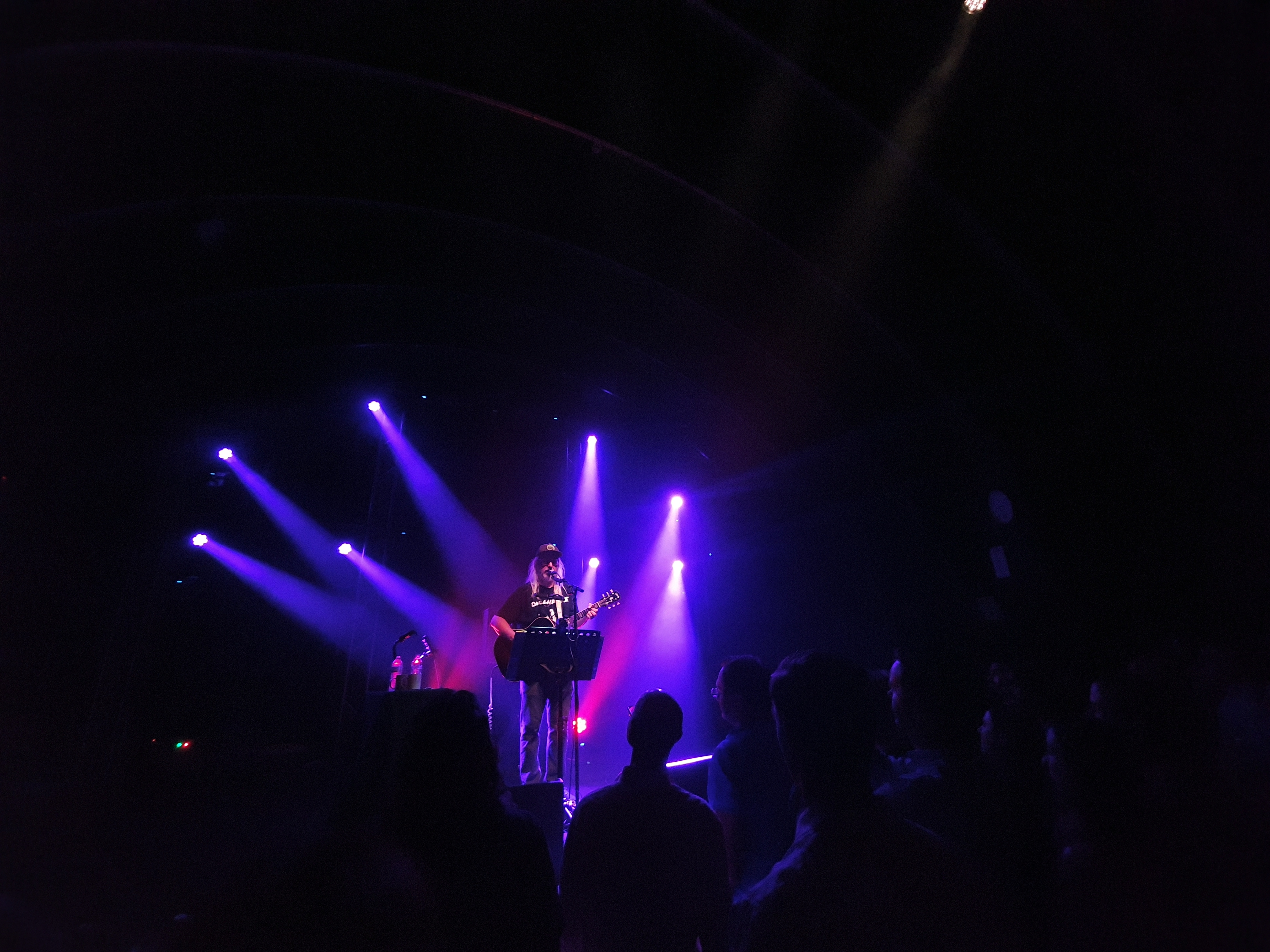 The crowd of ex-grungers move to the front. We’ve all subconsciously agreed to keep a body’s distance between each other. I respect that. Those at the front peak over to see Mascis’ pedal board and start snapping some sneaky pics. His signature noisy sound is as sort after as Willy Wonka’s secret recipes. Mascis takes to the stage amongst a short applause followed by silence. “There’s a strong silence in here,” Mascis exclaims before rectifying the issue with a loud acoustic strum. His Gibson acoustic is fed through his sought-after pedals, creating the signature Dinosaur Jr sound. But this time, a hollowed, woodiness is apparent, slightly separating Mascis’ solo work from that of his world-renowned band. Mascis begins with Thumb, off the 1991 Dinosaur Jr album Green Mind. No drums, no backing instrumentation, just Mascis’ guitar work at centre stage. His signature nasally vocals are just as prevalent as on his albums. We stand still and look up to the stage, Mascis is a deity as an aura of pink and blue lights illuminate his white locks. The set moves to Mascis’ solo work, transitioning from Listen to Me, to Every Morning to his latest work off his 2018 album Elastic Days, one of my favourite albums of last year. Mascis flicks on the noise with one heavy stomp of his pedals. Suddenly the gentle strums of the acoustic guitar transitions to the noisy, cacophonous solos Mascis is known for in Dinosaur Jr. He pulls off some impressive guitar moves as he bends notes and shreds on his acoustic guitar as if it was his Jazzmaster.