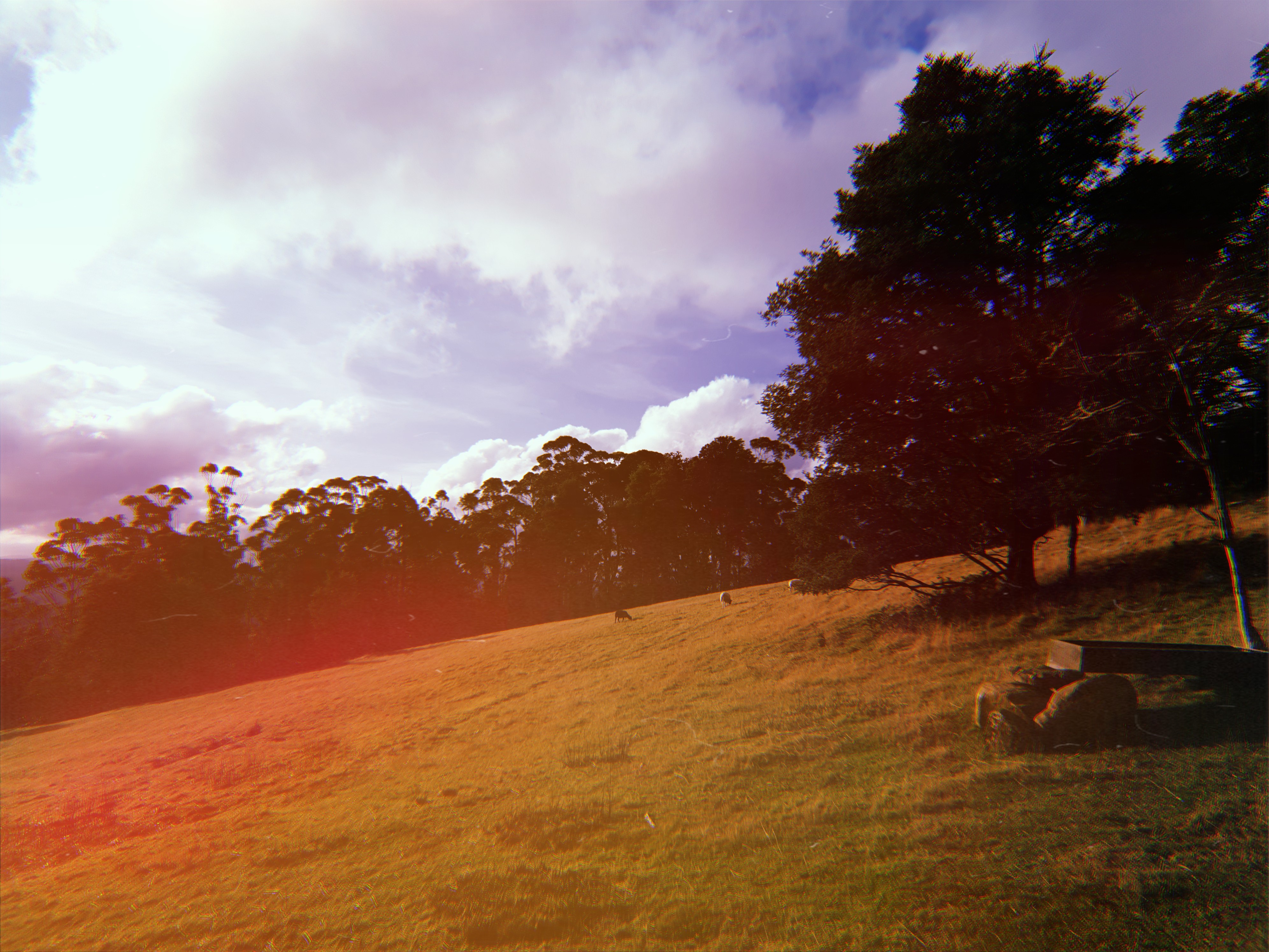 Tinges of orange and yellow painted the late afternoon sky. The rain had settled, and the clouds had decided to let in more sunlight than they had previously done. Teish and I sat outside on the deck overlooking the Lilydale valley below, Boags XXX Ale in hand. Quolls and sheep shared the hillside, crunching on the crisp winter grass. An outside bath sat on the far end of the deck. I considered running a bath as the sun set, though I knew the Tasmanian chill would soon become more brittle. I walked around the corner of the lodge to collect firewood for the cold night ahead. Teish peered through her polaroid camera trying to capture the little light left across the hillside. The Rolling Stones Let It Bleed played on the record player inside. Smoke had begun to bellow out from the chimney above. The fire I had lit minutes prior started to take on a life of its own. A success in my books. As the sun set, Teish and I returned to the warmth of our eco lodge. A smokiness still lingered inside thanks to the little ventilation surrounding the fireplace. Teish begun to slowly boil the water on the gas stove for our pasta dinner. I slid open the glass door and waved the remaining smoke out with a pillow from the couch. This is living at the bottom of the world.